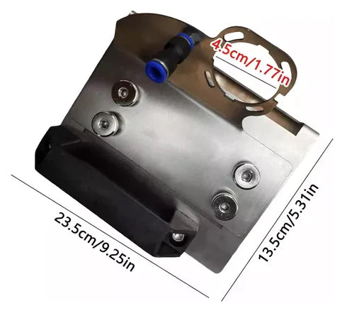 Sí, es compatible con la mayoría de amoladoras estándar de 4.5” y 5”. Solo debes ajustar correctamente la base.