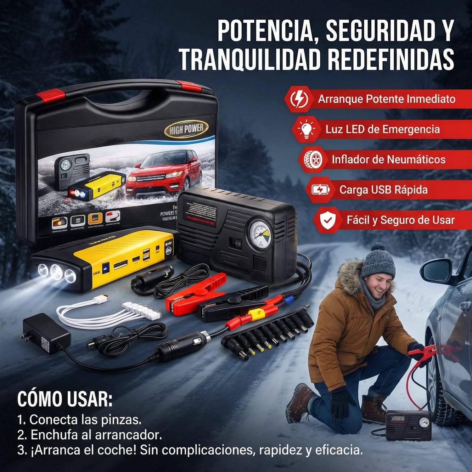 Función dual: arrancador + power bank |